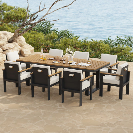 Table à manger rectangulaire en bois et aluminium pour 6 personnes pour terrasse extérieure, 8 chaises de salle à manger